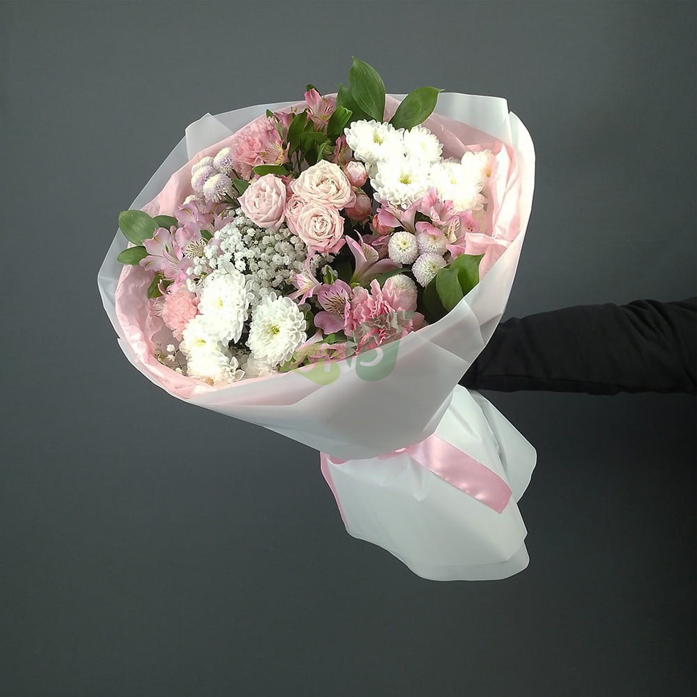 Нужны цветы в подарок – сборный букет «Мелодия рассвета» это красивый, нежный и естественный букет из роз, хризантем и альстромерий, который можно дарить по любому поводу.